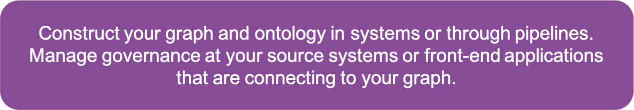 Construct your graph and ontology in systems or through pipelines. Manage governance at your source systems or front-end applications that are connecting to your graph.